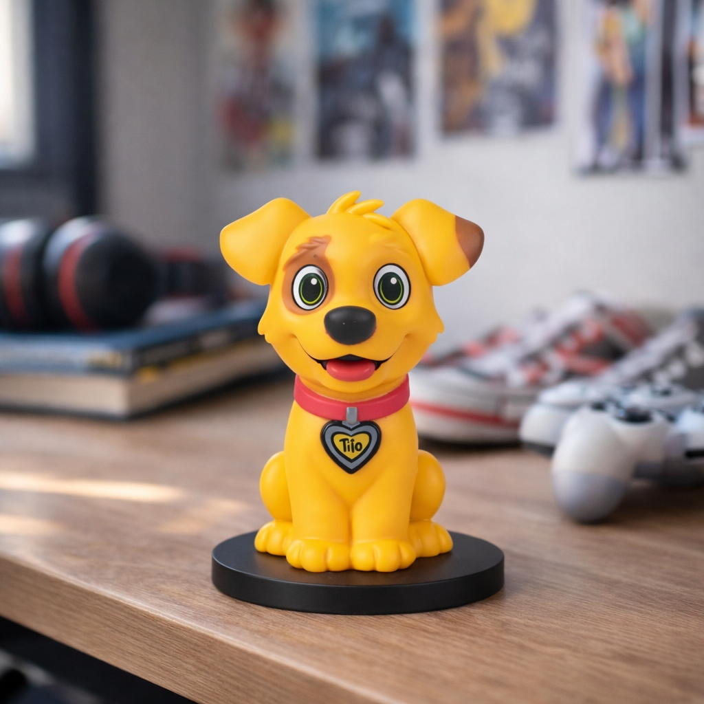 Inspirado en su mensaje de amor, ánimo y compañía, esta figura representa a ese amigo fiel que siempre está ahí. Su diseño compacto y expresivo lo convierte en una pieza ideal para estantes, escritorios o espacios especiales, sin perder la posibilidad de ser parte del juego creativo de los niños.